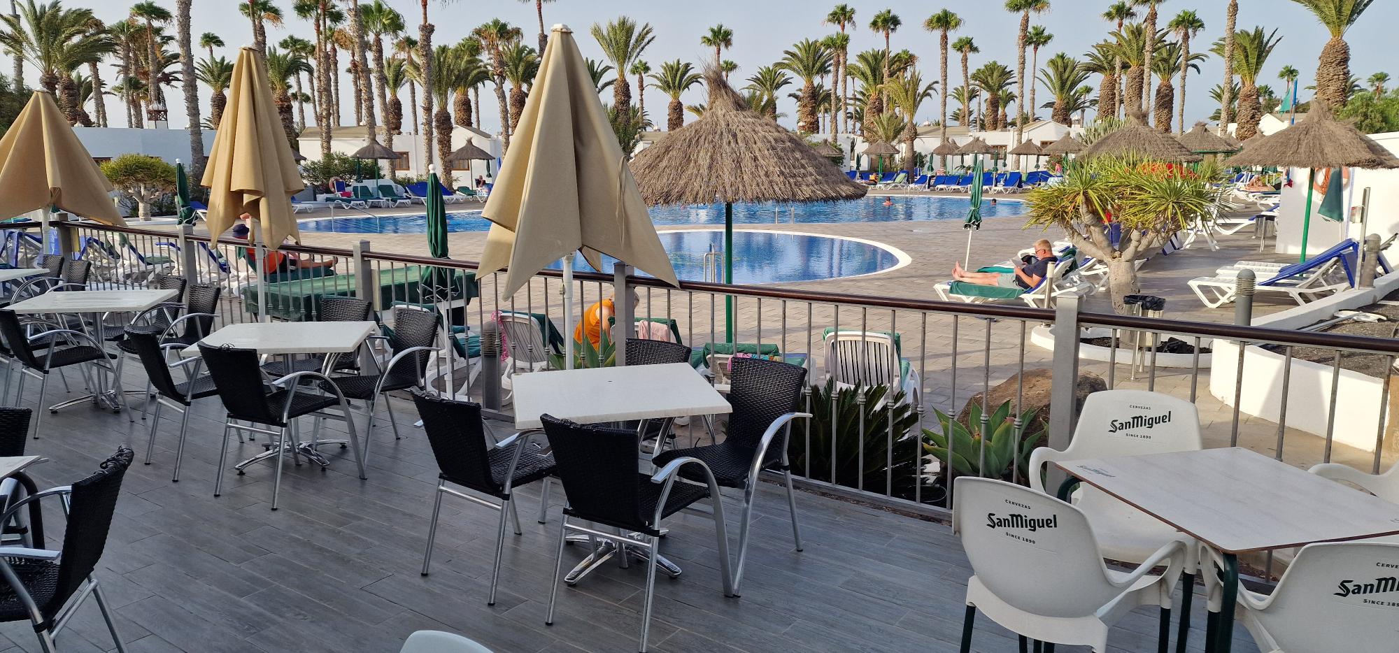 - Prachtig groot verwarmd zwembad met badmeester – Las Brisas heeft het grootste goed verwarmde zwembad op het eiland Lanzarote – zowel dit als het aparte kinderbad wordt het hele jaar door op een comfortabele watertemperatuur verwarmd – zonnige door een groot terras met voldoende ligbedden, tafels, stoelen en parasols