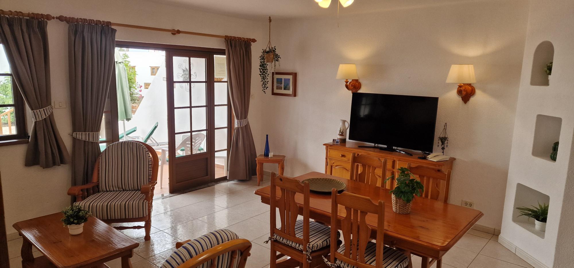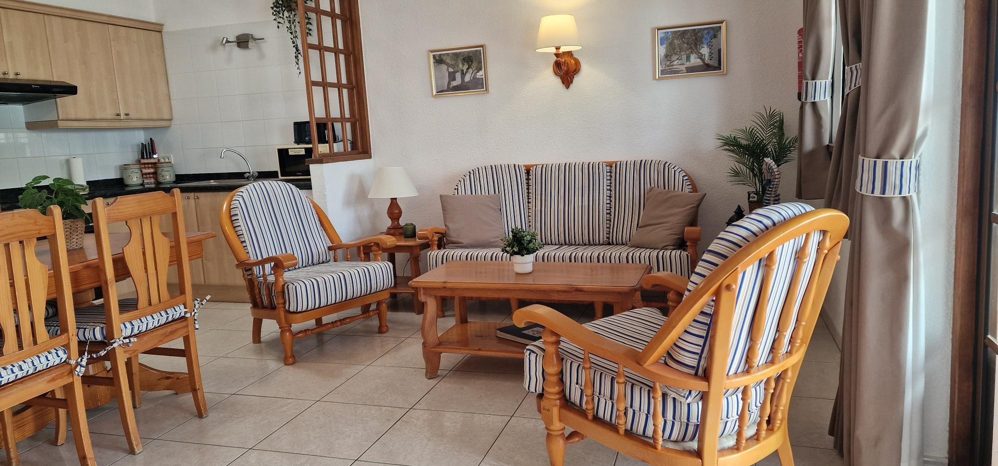 Deze gelijkvloerse villa is licht, luchtig en gerenoveerd. Het is zeer ruim met een open woon-/eetkamer, volledig ingerichte keuken, slaapkamer met tweepersoonsbed en douche/toilet. Buiten is er een groot privé zonneterras met BBQ, terras tafel en stoelen, ligbedden en schaduwplek onder de grote pergola. Al met al een echt thuis ver van huis! De gerenoveerde keuken heeft nieuwe tegels, kasten en werkblad met nieuwe kookplaat plus oven, magnetron, koelkast/vriezer, waterkoker, oorzaak, filterkoffiezetapparaat en espressomachine, ook is het volledig uitgerust met servies, bestek en kookgerei. De grote open woon-/eetkamer is ingericht en gemeubileerd tot een hoge standaard met een bank en fauteuils, verschillende tafels, lampen, dressoir en een eettafel met vier stoelen. Er is een flatscreen satelliet-tv met Britse (BBC1, BBC 2, ITV, Channel 4, Sky Sports 1, 2 plus News), Spaanse, Duitse en Italiaanse kanalen. Ook aanwezig zijn een dvd-speler, telefoon en WiFi-internet. De tweepersoonsslaapkamer indien heeft twee aparte bedden (deze kunnen nodig tegen elkaar worden geschoven als een tweepersoonsbed) en er is een grote dubbele kledingkast met veel opbergruimte. Als er meer dan 2 gasten verblijven, slapen extra gasten op opvouwbare Z-bedden. De maximale bezetting voor deze villa is 4 gasten.